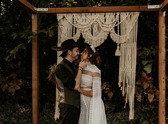 Julia + Andres' boho wedding took place on enchanting patio garden at The Wilder.